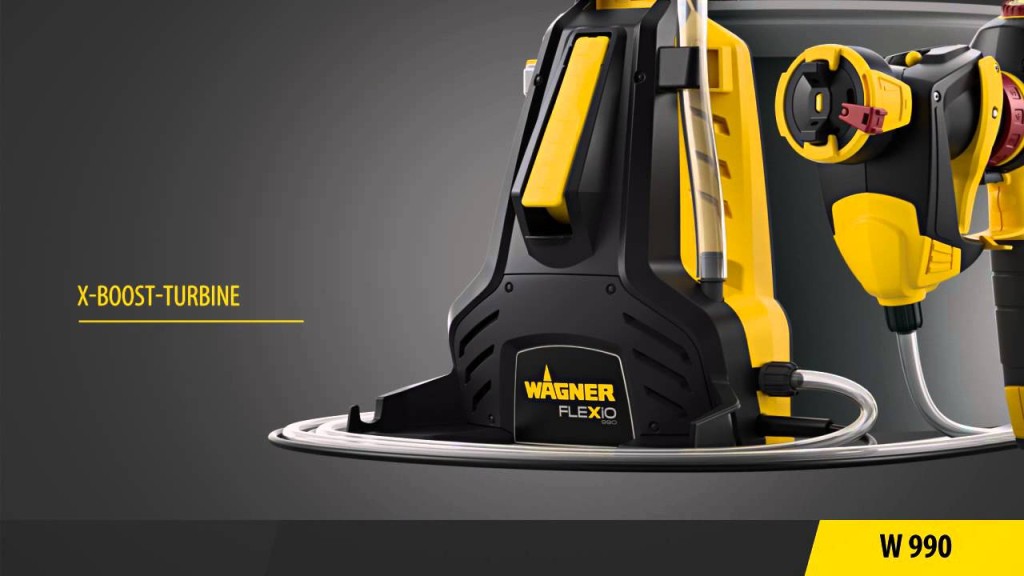Directamente de EE.UU. Wagner nos trae la renovada y potente turbina Wagner W990 FLEXIO es la evolución de las turbinas HVLP. Incorpora un sistema de aspiración directa desde la cubeta de pintura.